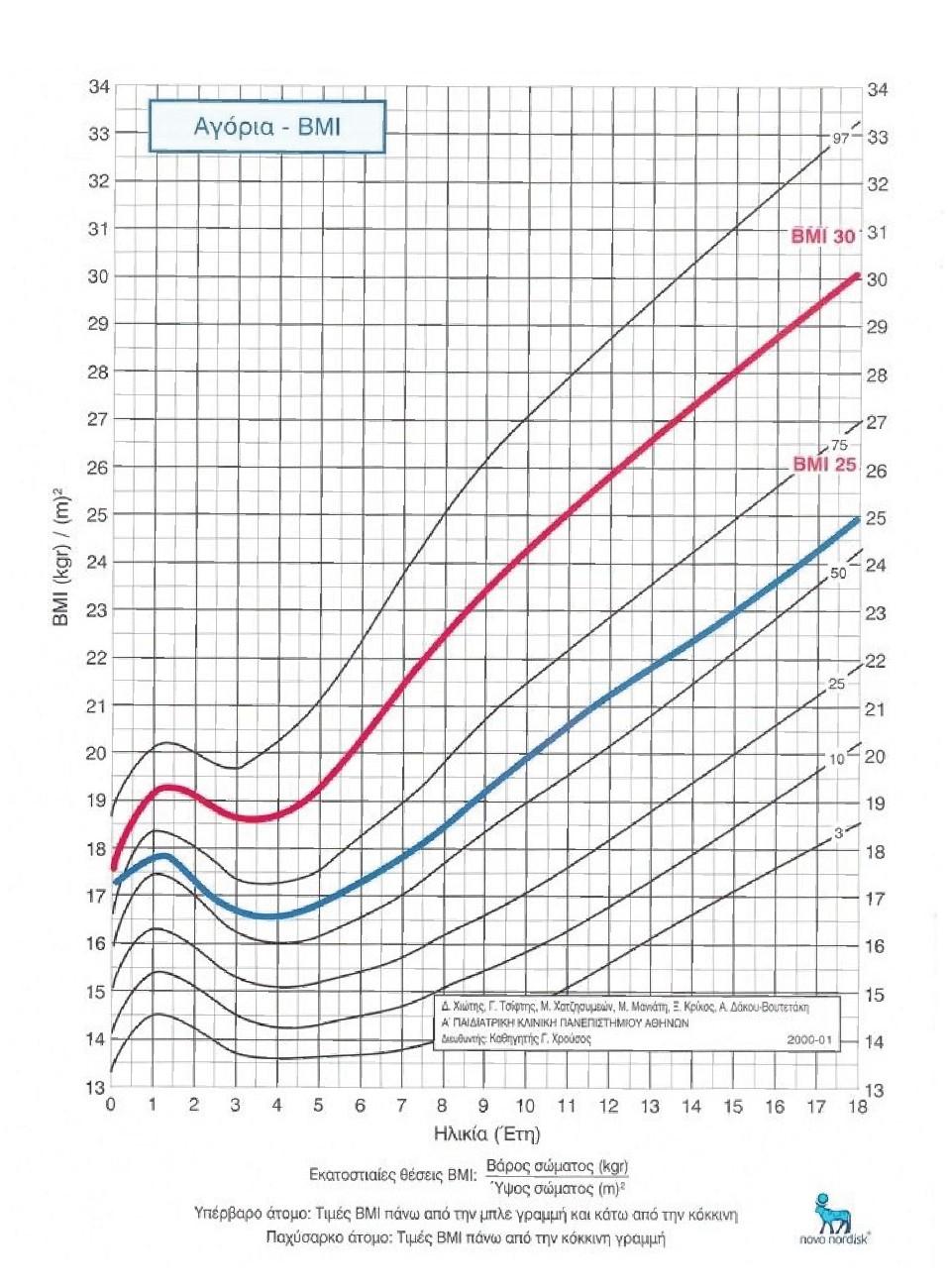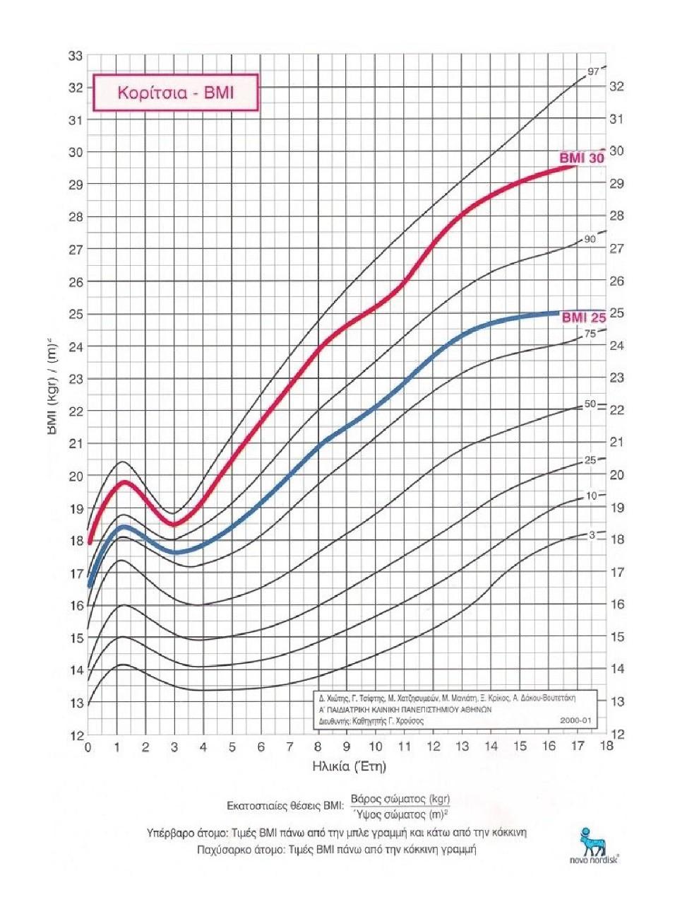 Αν ο Δ.Μ.Σ. του παιδιού  βρίσκεται κάτω από την μπλε καμπύλη τότε θεωρείται σε φυσιολογικά για την ηλικία επίπεδα. Παιδιά που έχουν Δ.Μ.Σ. μεταξύ της μπλε και της κόκκινης γραμμής  θεωρούνται υπέρβαρα , ενώ αν ο Δ.Μ.Σ. είναι πάνω από την κόκκινη γραμμή , τότε έχουμε  περιστατικό παιδικής παχυσαρκίας και πρέπει σαφώς να λάβουμε τα μέτρα μας. Ιδιαίτερη προσοχή αν ο Δ.Μ.Σ. είναι κάτω της τελευταίας καμπύλης τότε πρόκειται για λιποβαρές παιδί και χρήζει ιδιαίτερης προσοχής.